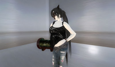 This is the "Heart Splatter" tank, and...it's kind of the same problem, because it's the same template. The graphic is better, and nicely pops across the front of the garment, but...there's just an overall "meh" impression. Maybe I'm overtired.