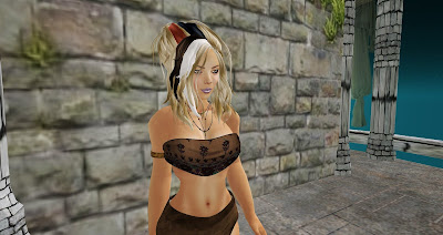 (The skin's from Aeva, her "Tsuki/Saturn" in tone 3, mid-cleavage. The eyes are from Poetic Colors; they were a freebie back in the summer of 2012, but Mm. Ling has similar blended tones in both white and dark sclera. The outfit comes from MeshedUp, and it's called the "Azra" in Brown. No shoes, and the armlet and the necklace came with the outfit.)