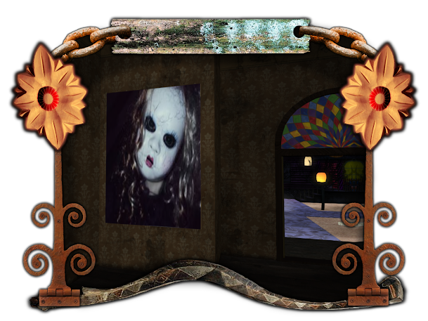 There was a fairly tricky haunted house. The main door was boarded up, so I needed to sneak inside. Though the doll-mask image, that was from the lobby of the house. Still creepy.