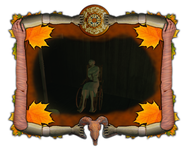 So, this is the landing point. It's not a bad little space--good view, if dark due to enforced Ghost Windlight settings, a HUD giver for the sim's Skeleton Hunt, a guestbook where folks can leave comments. Sure.